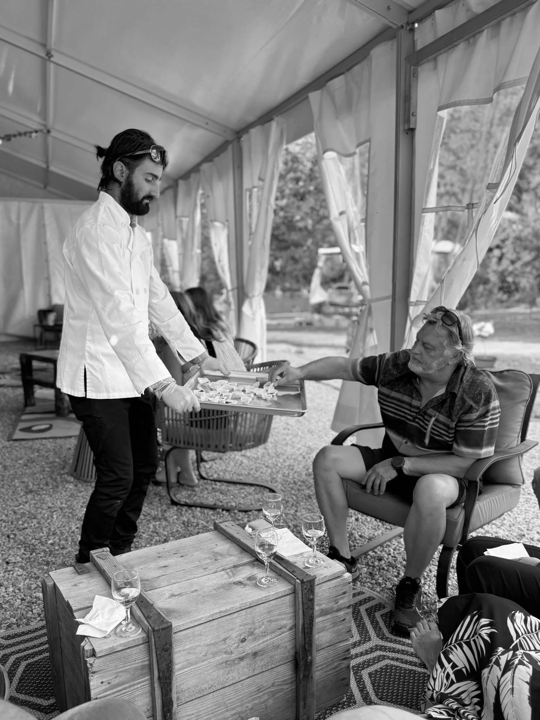 A Hosted Event includes use of the event tent with wine service provided by Mountain Soul, and you pay only for the food and wine purchased on-site (minimum spend applies).